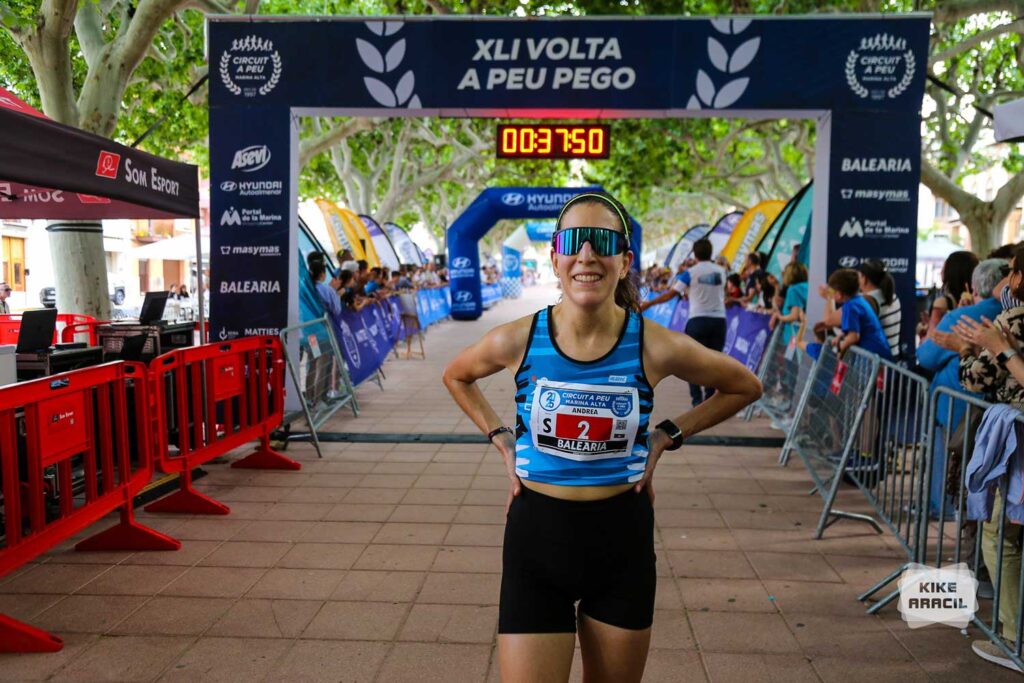 L’atleta del C.A. Santa Eularia va ser el més ràpid i assoliment la victòria absoluta llevant-se la espineta de l’anterior edició que va ser segon, Andrea Abad no va fallar i reedità el triomf en xiques com en el 2024.