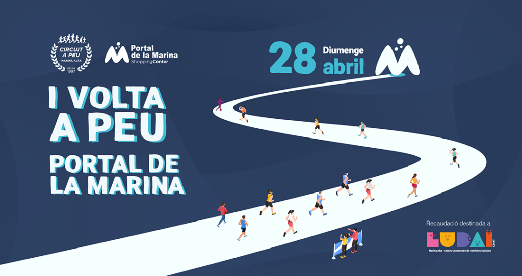 La I Volta a Peu Portal de La Marina, novetat en esta edició arriba el diumenge 28 d’abril al CC Portal de La Marina amb tota l’essència del Circuit a Peu i el seu besant solidari