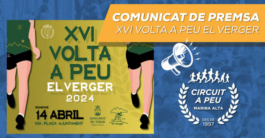 El Club Sense Pressa El Verger, ajunte l’Ajuntament i la seua regidoria d’esports, organitzen la XVI Volta a Peu El Verger, que torna a la matinal del diumenge, la carrera se celebra este diumenge 14 d’abril i discorrerà pel seu nucli urbà i el terme municipal i per la falda de la muntanya Segaria.