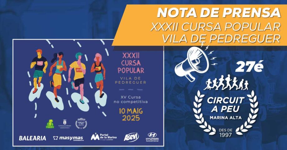 El Club d´Atletisme Cametes, organiza con la colaboración del Ayuntamiento de Pedreguer y la concejalía de deportes, la XXXII edición de la Cursa Popular Vila de Pedreguer, una cita que congregará multitud de atletas de todas las edades.