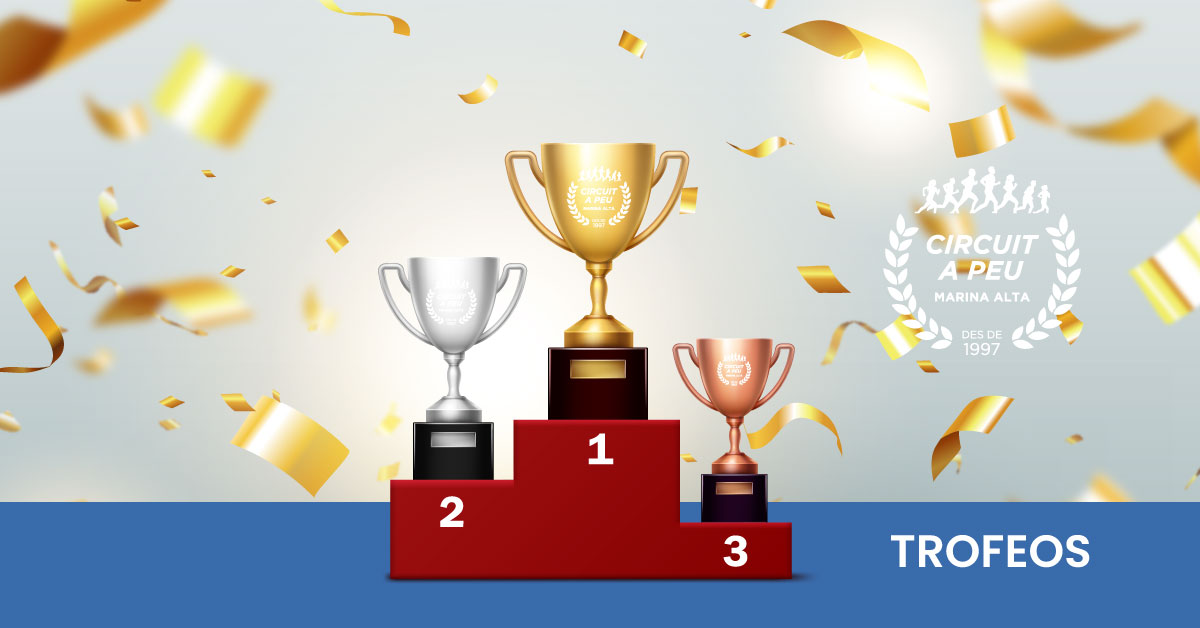 TROFEOS ADULTOS: En cada carrera se otorgará trofeo a los 3 primeros de cada categoría. Premios/Trofeos corredores locales: *Locales son los empadronados en la localidad en la que discurre la prueba o los corredores pertenecientes al Club organizador (se especifica en la información de cada carrera en particular)