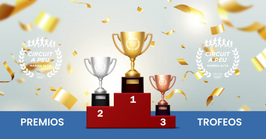 PREMIOS a los participantes en el XXV Circuit a Peu Marina Alta. Estos premios y sorteos se otorgarán a los participantes inscritos en el Circuit según se especifica en cada uno. Adicionalmente, cada Club Organizador de cada localidad en las que transcurren las 12 pruebas del Circuit es posible que otorgue premios adicionales a los corredores mediante patrocinadores locales u otros medios, esta información se actualiza en el evento concreto de cada carrera.