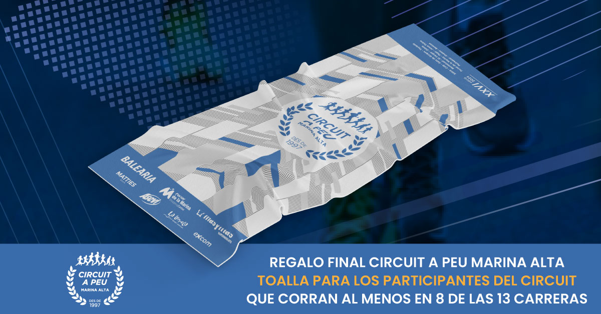 Una toalla del XXVI Circuit a Peu Marina Alta para los participantes inscritos que corran al menos en 8 de las 13 pruebas.