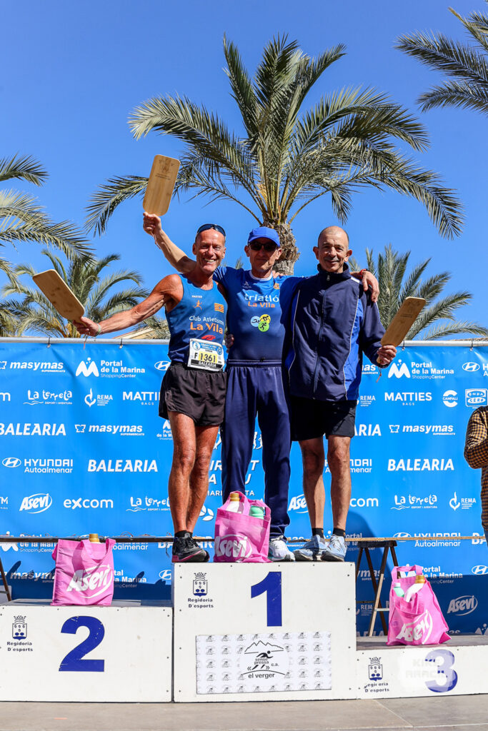 El podi local masculí, li ho van adjudicar el corredor promesa sub 23, del Sense Pressa El Verger Andreu Aibar Pastor, amb un temps de 33´:18”, seguit de Pere Fillol Cardona, veterà Al fet que va detindre el crono en 40´:19” també del Sense Pressa El Verger, completánt el podi local, el també veterà A i Independent Roberto Fuente que va fer un temps de 40´:41”.