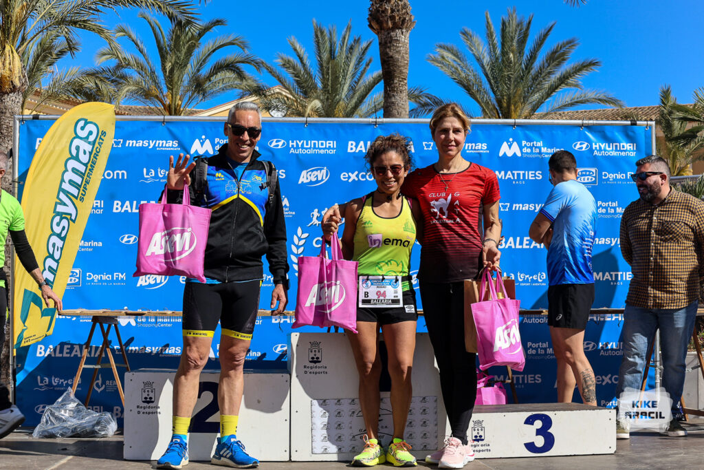 Nina Ivankiv, sènior femení del CA Publidom 40:55, seguida per també sènior femenina, María Sánchez Martínez, del Sense Pressa El Verger 42:48, i la seua companya d’equip, María Giménez Estela veterana A 45:48, van ser segona i tercera respectivament.