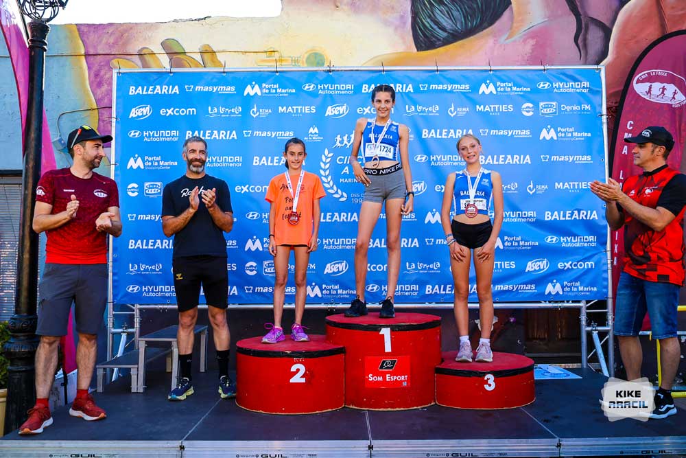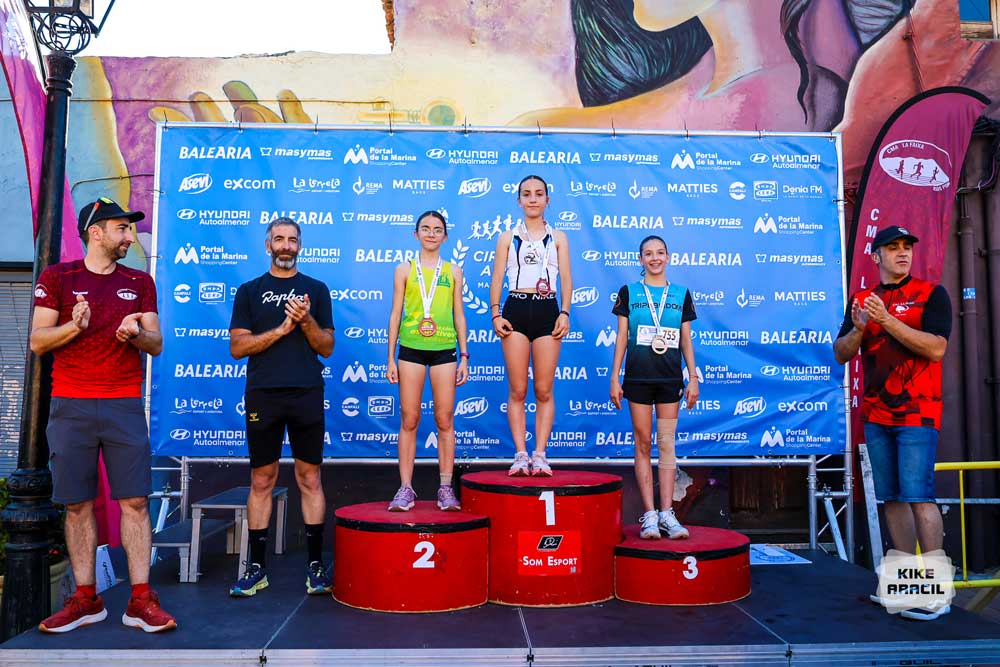 Bianka Nagy del C Multiesport Benitatxell, va repetir triomf i s’adjudicava el podi femení, en xics Adrián Llobell del C Ginestar Atletisme Benissa, va ser el vencedor en un podi inèdit en categoria juvenil, al costat del seu company d’equip Hugo Ivars i l’independent Ximo Escrivà.