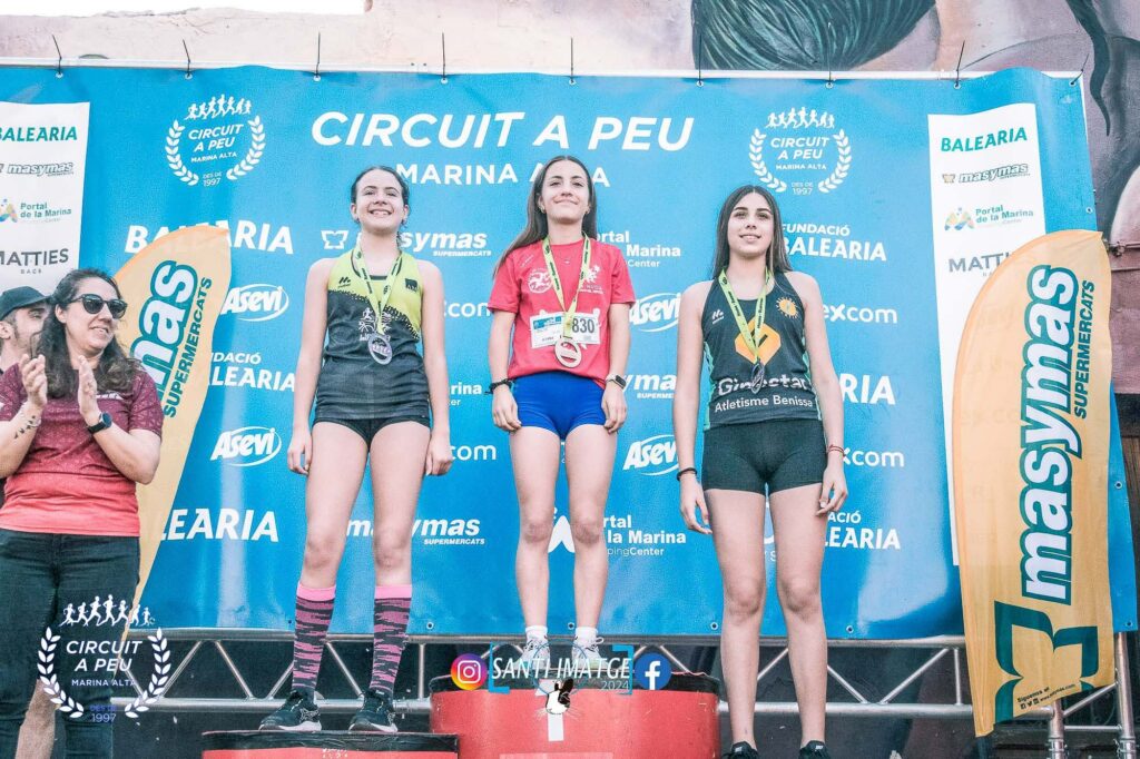Ariadna Sojo Pimentel del Dianium, assoliment pujar en el més alt del calaix amb un temps de 02.49, Anna Fuertes Garrigues (CA Ginestar Atletisme Benissa) entre segona 02.58, seguida de la independent Carla Fuster Moreira 03.02.