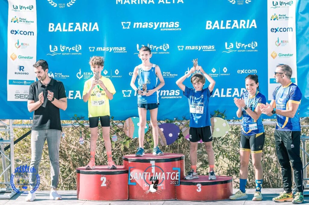 Los chicos que recorrieron también la distancia de 1.100 metros, Feliu Gregori Pardo (CE El Corriol) 03:39 gano en esta ocasión a Didac Chesa Cervera (CA Orba Multiesport) en un segundo 03:40, tercero entró Vojthec Oplt, de (CA Dianium Baleària) 03:43.