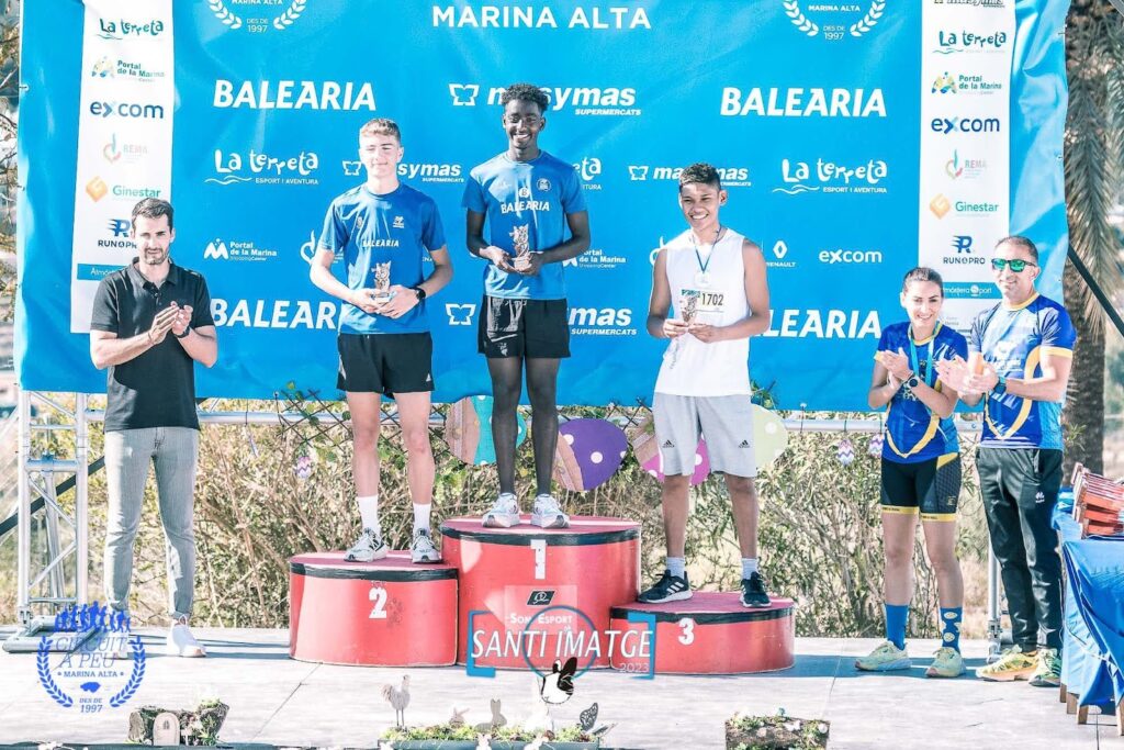 Didac Bañuls Climent (CA Dianium Baleària) fue el primer cadete en cruzar la meta, al seguir la estela del juvenil Roc Martí, que le llevo a realizar un registro de 06:36, para auparse en lo más alto del cajón, precedido por su compañero Emilio Signes Monfort (CA Gata) 07:09, siendo tercero OJoan Garcia Milvaques (E Atletisme Pedreguer) 07:35.