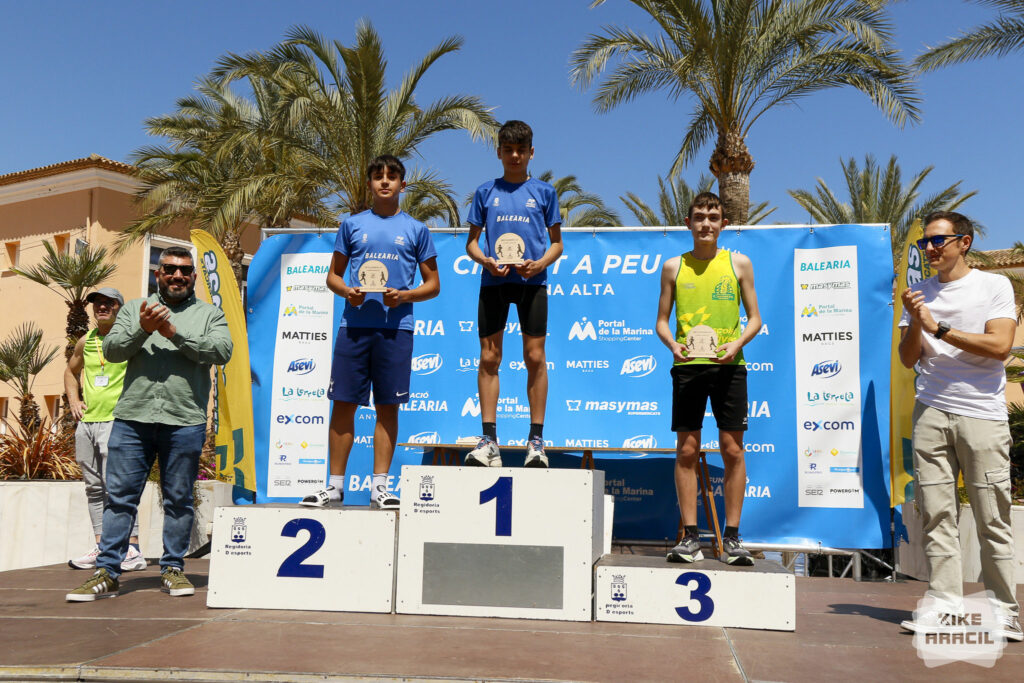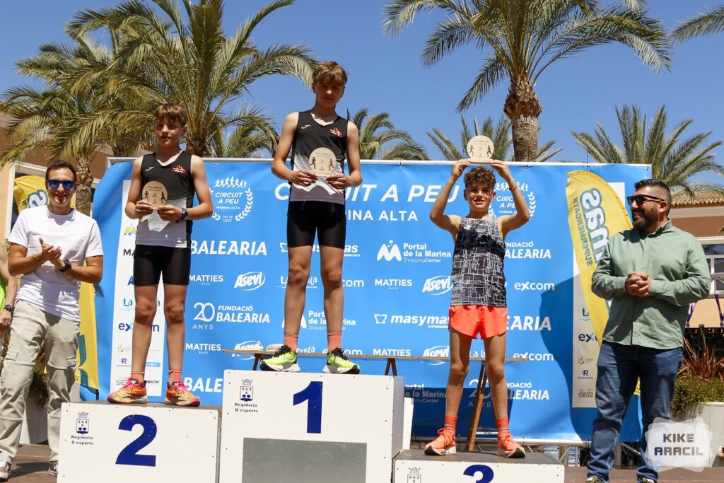 En xics Marco García Torres CA Dianium Baleària) 09.19, va véncer per davant de Roc Martí Soldevila, del CA Ondara 09.44, en una lluita bonica i Didac Bañuls Climent del Dianium complet el podi amb un temps de 10.02.