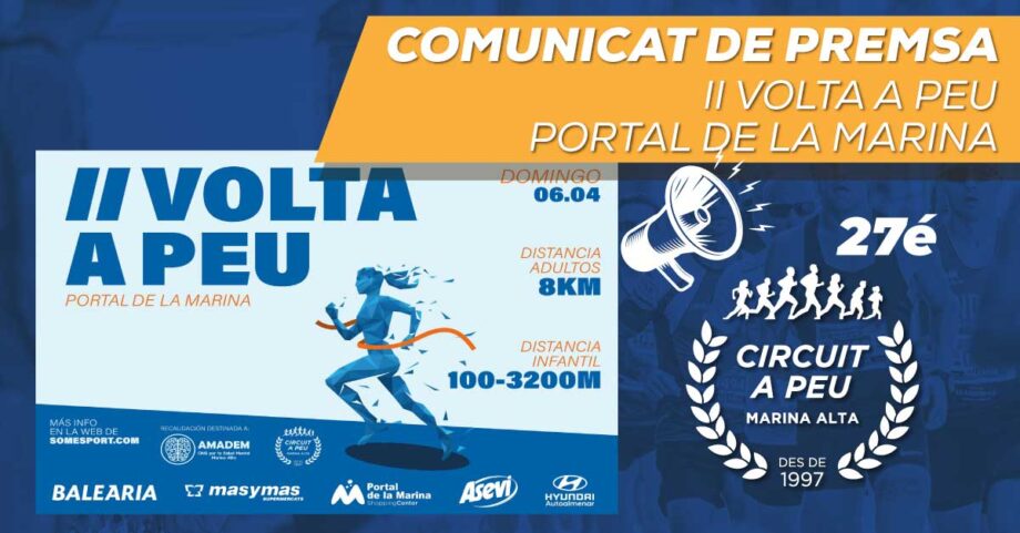 Després de l’èxit de l’anterior cita esportiva, la II Volta a Peu Portal de la Marina, esta edició, donara tota la recaptació en benefici de l’Associació AMADEM, una associació sense ànim de lucre, constituïda al març de 1999, que vela pel compliment dels drets de les persones amb problemes de salut mental, per a així millorar la seua qualitat de vida i la dels seus familiars.