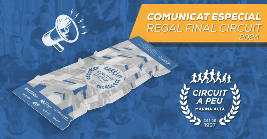 El Circuit a Peu Marina Alta, lamenta comunicar que, a causa de problemes logístics, el regal final. que hauríem d’entregar este dissabte en la XXV Cursa Popular Benissa, desafortunadament no es podrà realitzar.