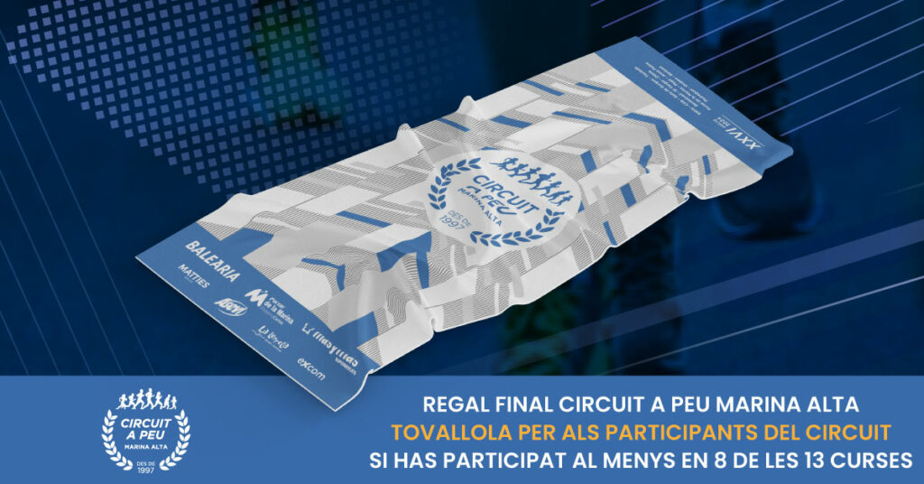 Regal final del Circuit per als corredors que hagen completat huit de les tretze proves, a partir de les 16:00h poden passar a arreplegar el seu regal final del Circuit a Peu Marina Alta 2024, en línia de meta (C/ Pare Andrés Ivars, 9).